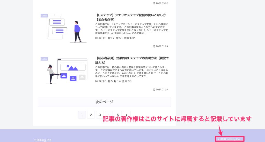 このブログでも著作権はブログに帰属しているので、下記のように記載しています。