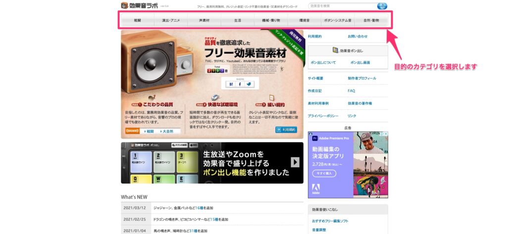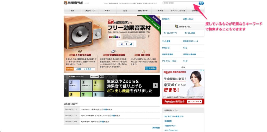 「効果音ラボ」は、名前の通り「効果音」を扱ったサイトです。