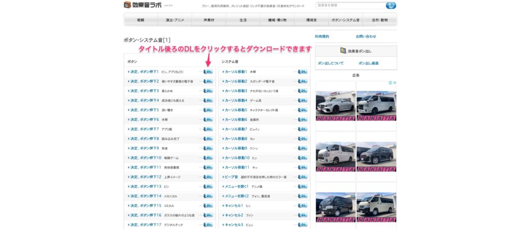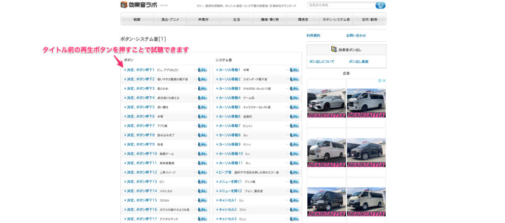 対して効果音ラボは、1ページにまとまるように整理されているんですね。