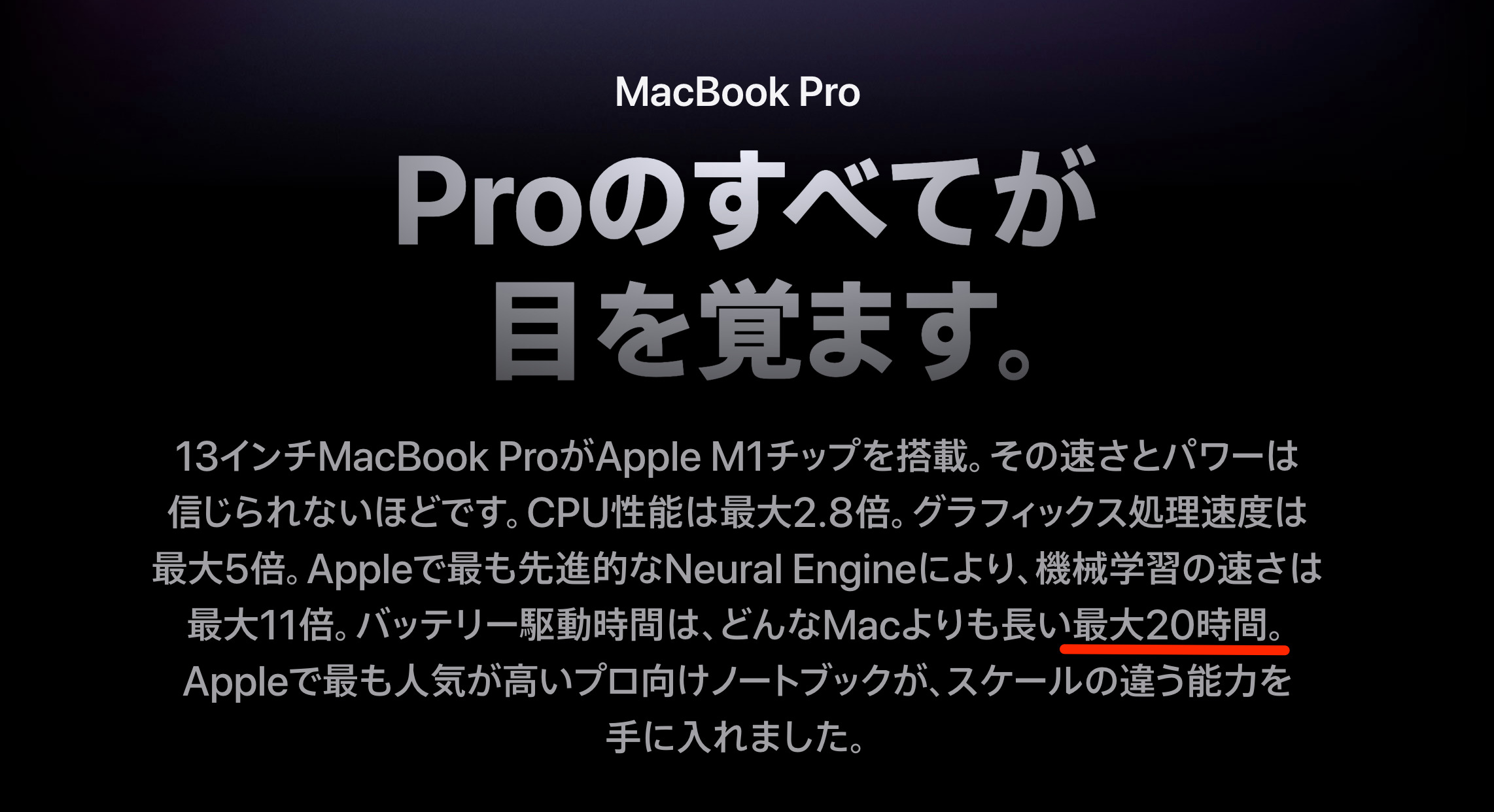 正直、M1を搭載したMacをカタログスペックで比較するとそんなに差は感じません。