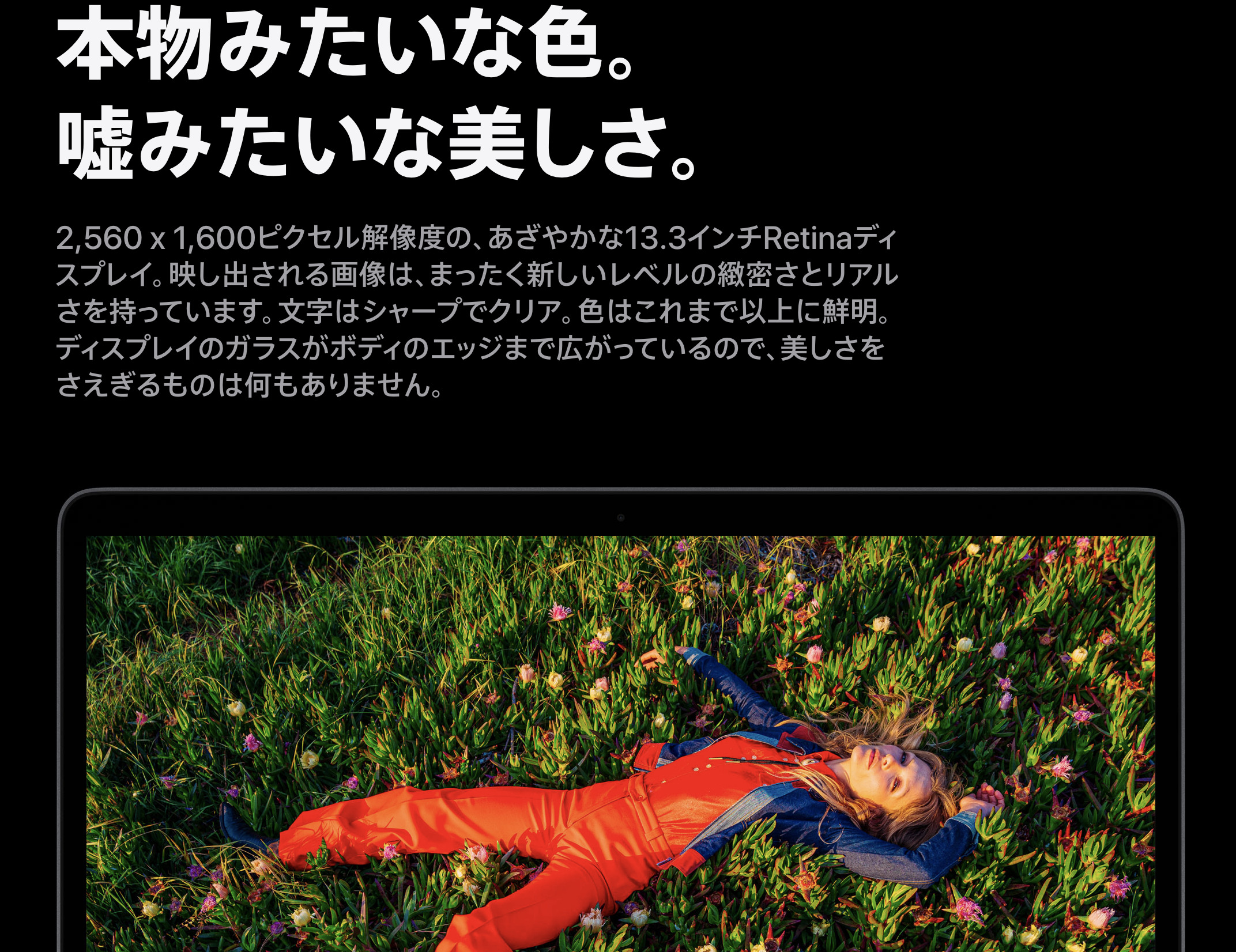 MacBookAirのディスプレイも素晴らしいのですが、Proはそれ以上に色や明るさの表現が豊かです。