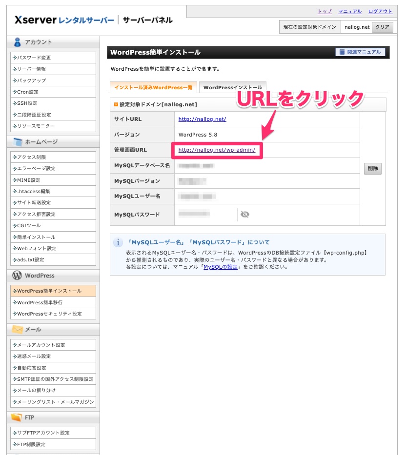 「反映待ち」は消えましたか?それではWordPressのインストールへ移りましょう。