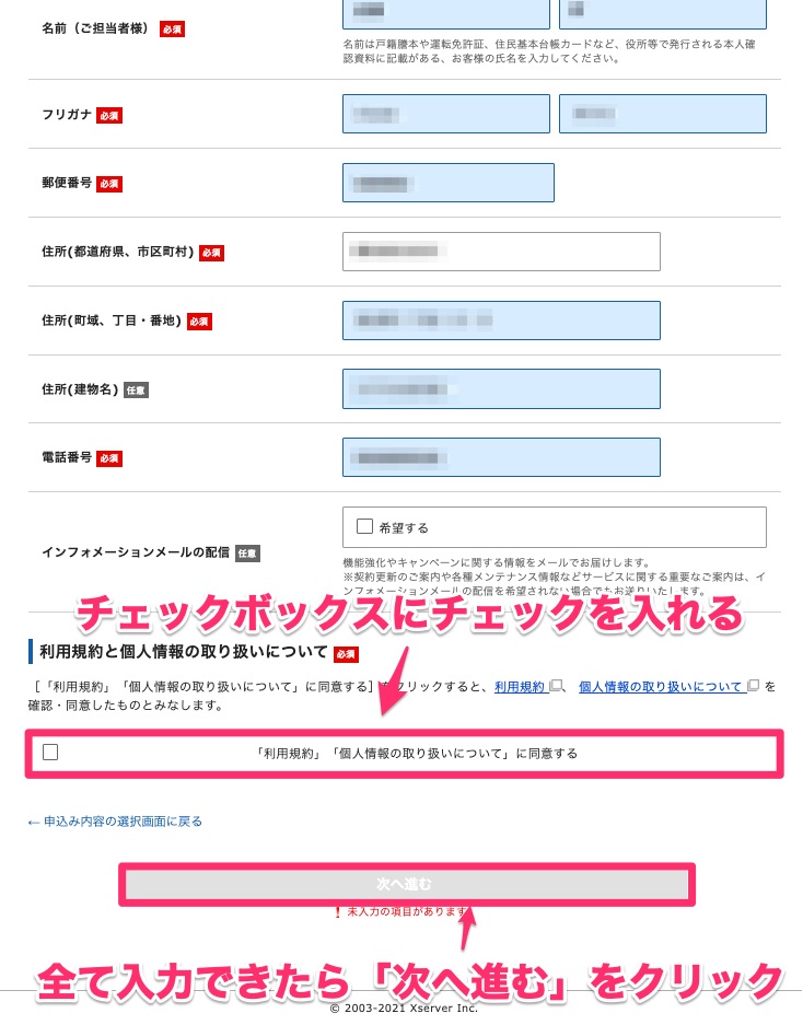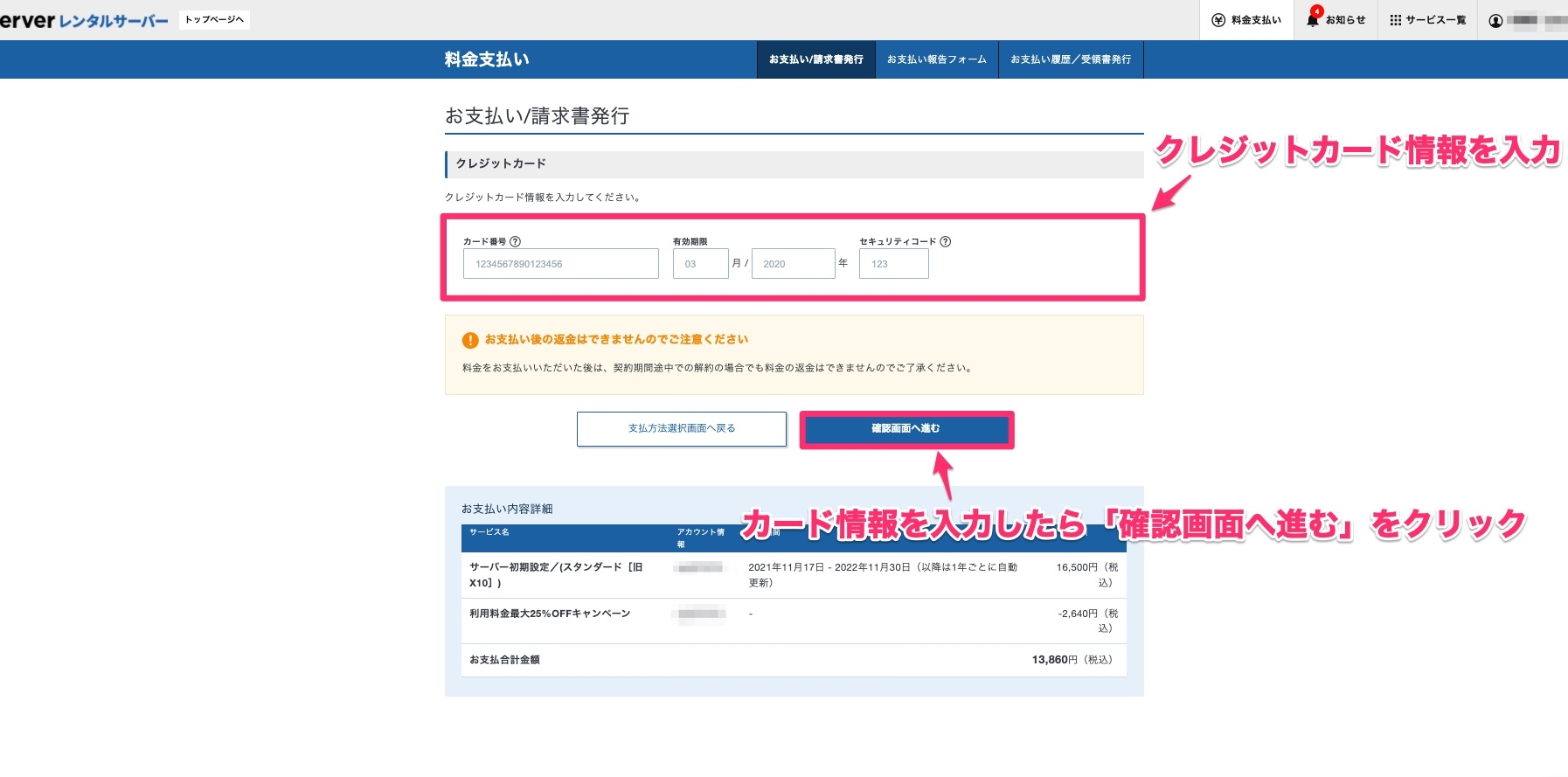設定し終えたら「確認画面へ進む」をクリックしましょう。