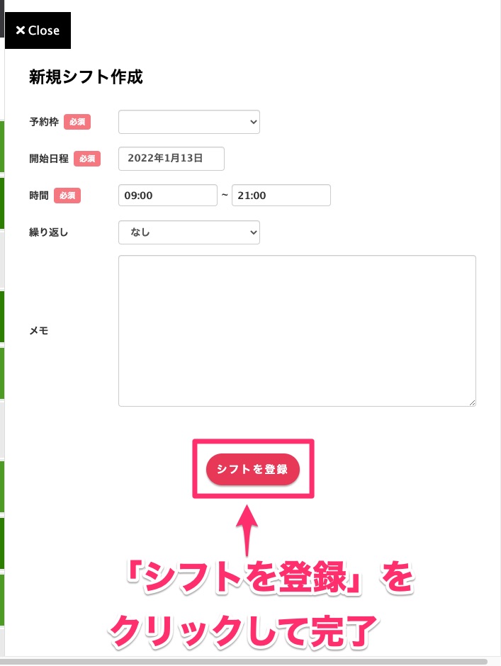 全て設定できたら「シフトを登録」をクリックして完了です。