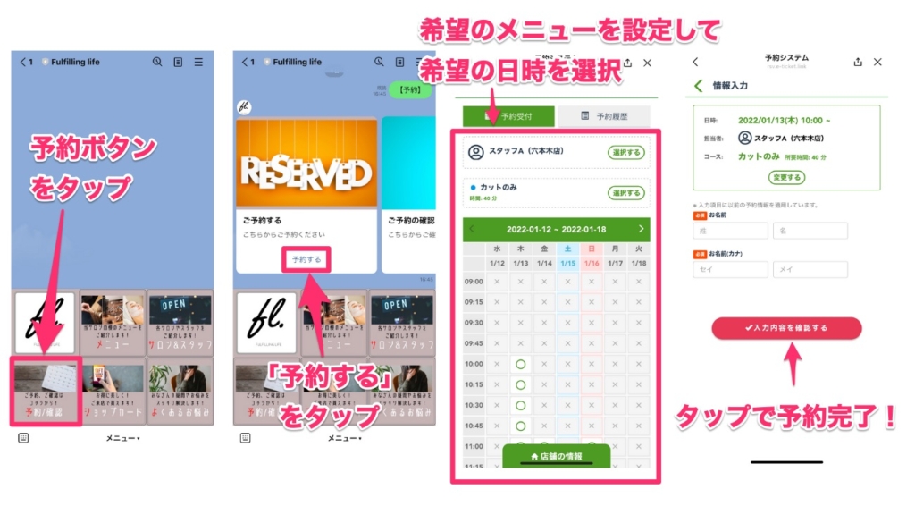 要は、美容室をホットペッパーで予約するのと同じ要領でLINE公式アカウントでも予約管理できるようになったという感じです。