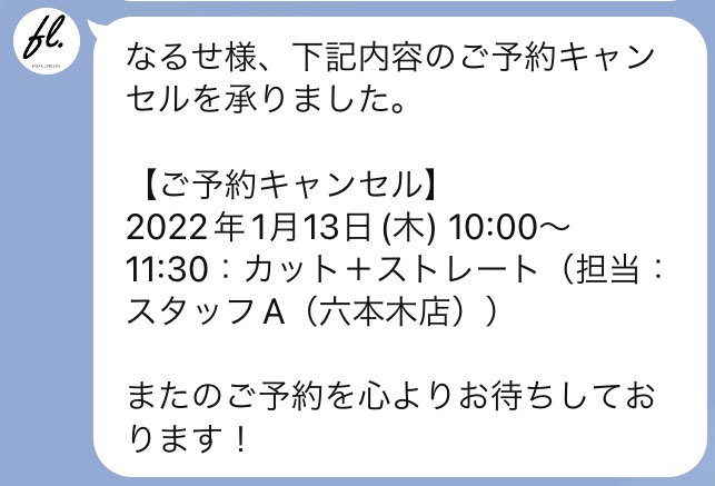 予約キャンセル時のメッセージ