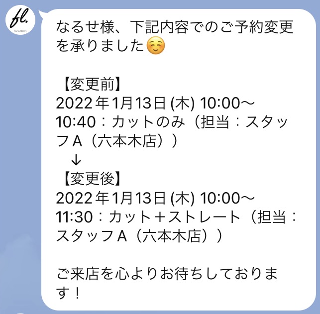 予約変更時のメッセージ