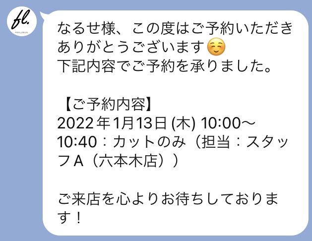 予約直後のメッセージ